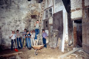 Im November 1982 war Josef Falke zum Vorsitzenden des Heimatvereins gewählt worden. Nun rückte die Burg mehr und mehr in den Mittelpunkt der Vereinsarbeit und sollte, wie man heute weiß, den Verein noch über viele Jahre an diese Aufgabe binden. Der Vorstand beschloss die Renovierung der Burgkapelle. Am 8. Februar 1983 wurde der Raum ausgeräumt und zum Erntefest im September war das Werk vollendet. Etwa 950 Stunden Eigenleistung sind im Tagebuch für die Instandsetzung der profanierten Kapelle festgehalten.